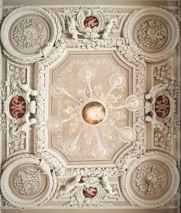Im Schloss Moritzburg Zeitz, in dem Maria Amalia bis 1718 lebte, ist das Gemach der Herzogin durch eine reiche, dreidimensional ausgeführte Stuckdecke sowie einen ebenfalls reich mit Stuck verzierten offenen Kamin geschmückt. Das ihr gewidmete Gemach zählt dabei zu den herausragenden Raumkunstwerken des dreiflügeligen Schlossensembles. Die reich ausgeführte Stuckdecke sowie der kunstvoll gestaltete Kamin zeugen von dem spätbarocken Zeitgeist, dessen ursprüngliche Wirkung über Jahrhunderte durch spätere Überfassungen gemindert war. Hinzu kam, dass der Stuck Fehlstellen und Beschädigungen aufwies. So verbargen die überwiegend graue Raumfassung und Farbgebung sowie der Staub, den ehemaligen Glanz des Gemaches der Herzogin fast vollständig.