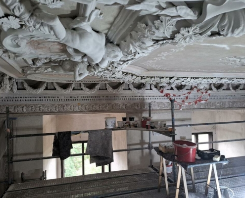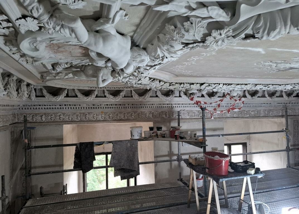 Auf Grundlage restauratorischer Untersuchungen und in enger Abstimmung mit dem Landesamt für Denkmalpflege und Archäologie Sachsen-Anhalt (LDA) beantragte man deshalb 2023 in einem ersten Schritt, hin zur Wiederherstellung und Sanierung, Förderungen zur Umsetzung der Maßnahme. Somit erhielt der Raum in den vergangenen rund eineinhalb Jahren nun weitgehend seine spätbarocke Farbigkeit und Ausdruckskraft wieder.