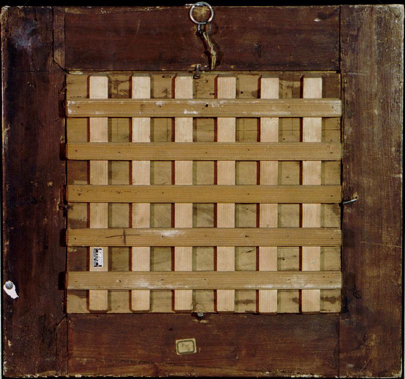 Bei dem Objekt handelt es sich um ein auf Holz (vermutlich Pappelholz) gemaltes Tafelbild, dass ursprünglich als Bestandteil der Front einer Cassone konzipiert war. Die Tafel besteht aus zwei horizontal verleimten Brettern und weist nur an der oberen und unteren Kante ihren ursprünglichen Zuschnitt auf. Die seitlichen Ränder wurden nachträglich beschnitten, wodurch das Tafelgemälde zu einem Kabinettbild verkleinert wurde.