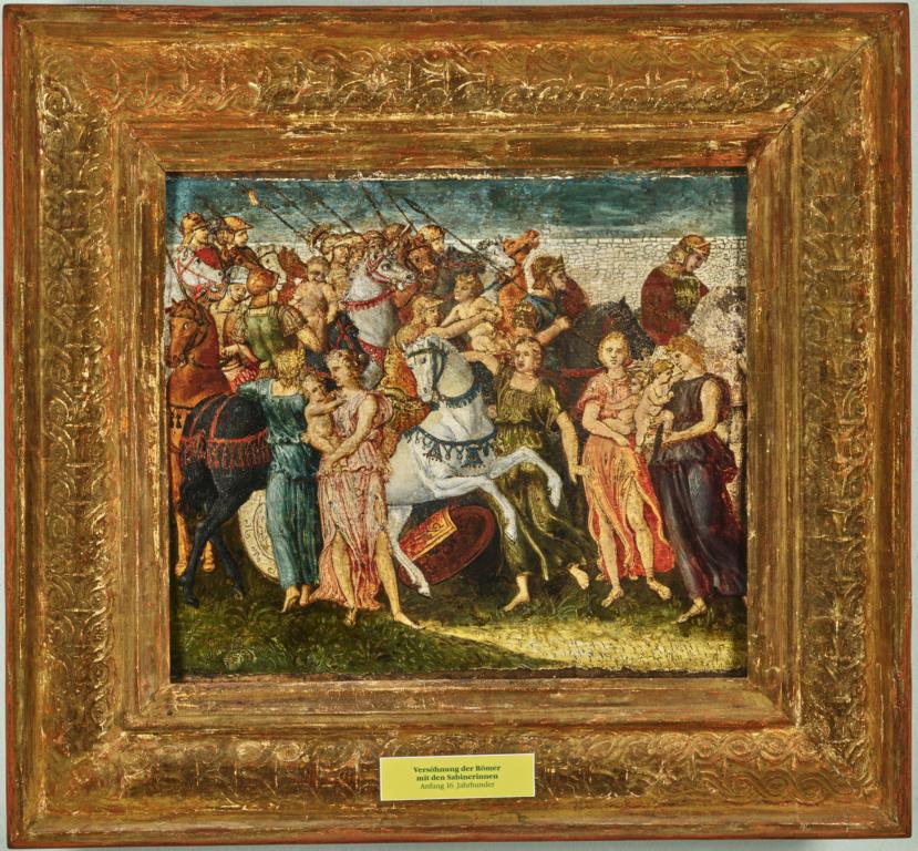 Viele historische Objekte sind heute nicht mehr in ihrem originalen Kontext oder Zustand erhalten. Auch das hier vorgestellte Holztafelgemälde ist heutzutage nur noch als Fragment überliefert. Ursprünglich bildete es einen Teil der Vorderseite einer italienischen Hochzeitstruhe, einer sogenannten Cassone. Damit war es Bestandteil eines Möbelstücks, dass im Kontext von Ehe und Mitgift eine wichtige Rolle spielte. Über die Jahre wurde das Bild aus diesem Zusammenhang gelöst und besteht nun als eigenständiges Gemälde fort. Nichtsdestotrotz verweist die dargestellte Szene weiterhin auf zentrale Themen wie Konflikte, Versöhnung und die gesellschaftliche Bedeutung der Ehe.