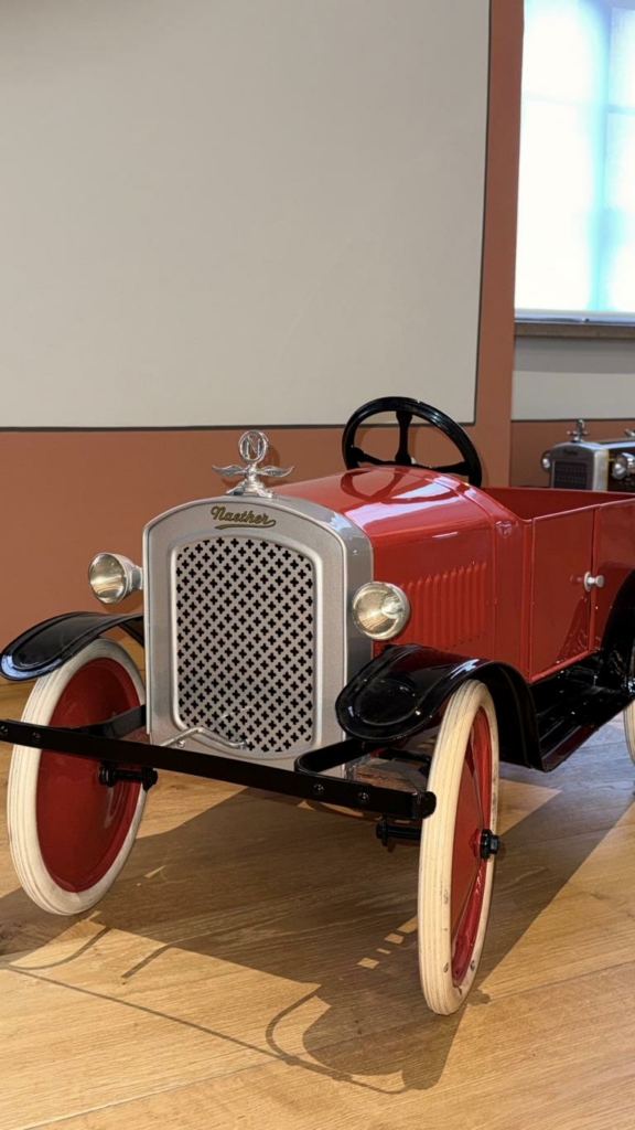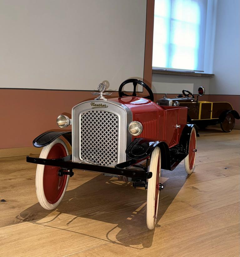 So konnte das Museum 2024 – dank ihrer großzügigen Spende – aus der Privatsammlung Eckart Holler 17 Kinderfahrzeuge ankaufen; 2025 erwarb Herr Naether weitere 15 Kinderfahrzeuge aus Naether´scher Produktion, von denen 14 auf dem Weg einer Dauerleihgabe ins Deutsche Kinderwagenmuseum gelangten.